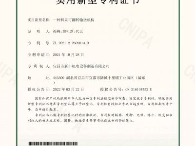 實用新型專利證書《一種料果可翻轉輸送機構》